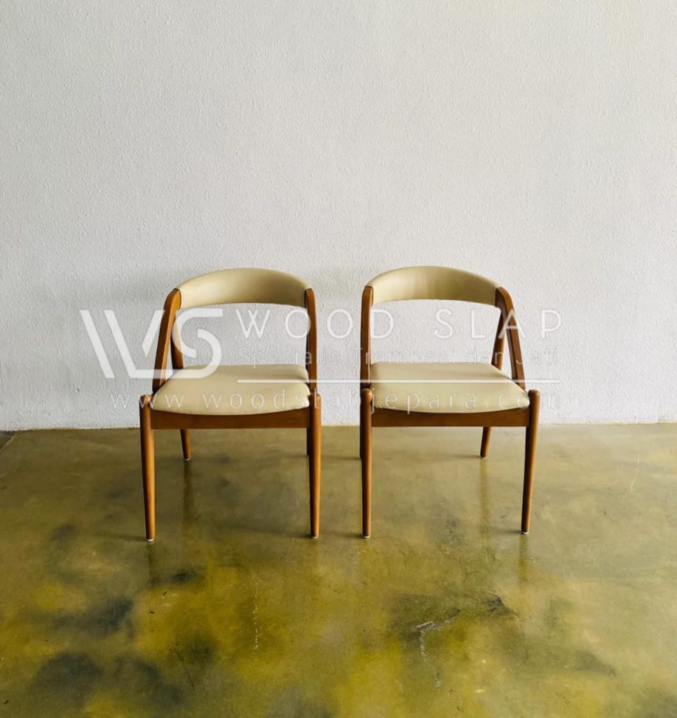 Sebuah kursi yang terbuat dari bahan material kayu jati grade A dengan kontruksi purus yang kokoh serta penambahan cusion pada bagian sandaran dan dudukan membuat kursi ini sangat cocok untuk digunakan pada ruang makan, cafe, restoran atau teras rumah anda, dengan desain yang milimalist elegant membuat kursi ini cukup diminati di kalangan anak muda, kursi ini merupakan salah satu koleksi dari katalog WOOD SLAB Jepara.