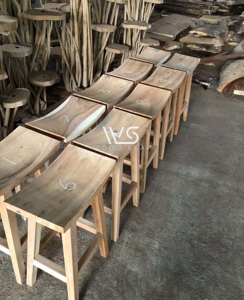 kursi bar yang sangat rekomended untuk anda yang terbuat dari material bahan kayu trembesi solid pada bagian rangka kursi. kursi ini merupakan koleksi dari WOOD SLAP yang berkonsep mini bar.