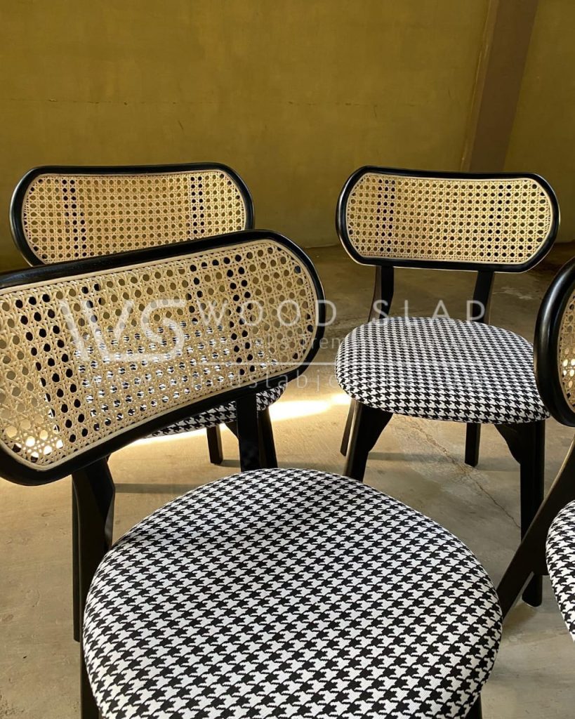 Sebuah kursi cafe yang terbuat dari bahan material kayu jati grade A dengan kontruksi purus yang kokoh serta penambahan rotan pada bagiam sandaran membuat kursi ini sangat cocok untuk digunakan pada ruang makan, cafe, restoran atau teras rumah anda, dengan desain yang milimalist elegant membuat kursi ini cukup diminati di kalangan anak muda, kursi ini merupakan salah satu koleksi dari katalog WOOD SLAB Jepara.