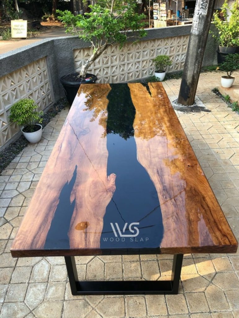 menampilkan perwujudan dari kombinasi klasik dan modern menjadikan meja resin kami terasa sangat berkesan, meja resin dengan bahan kayu jati tua yang mempunyai struktur kayu klasik di padukan dengan resin modern menjadikan meja ini sangat cocok untuk berada di ruamah anda.