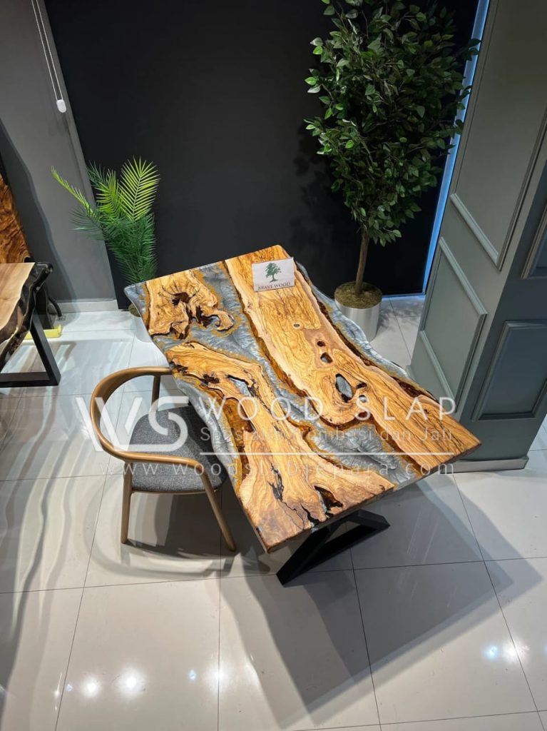 Pandangan pada desain meja makan resin kami. Meja resin dengan bentuk Persegi Panjang, kami menampilkan garis dan proporsi yang bersih dari kontur kayu jati erosi yang kami pakai dan dibedakan dengan kaki berbahan galvanis yang dirancang secara dramatis. Dengan bagian atas meja yang abstrak dari kayu jati yang di balut dengan resin epoxy, desain ini mewujudkan estetika dan gaya modern. Gabungkan meja ini dengan kursi makan kami untuk membuat perangkat makan eksklusif Anda sendiri. meja makan resin ini adalah desain yang pasti akan menarik perhatian.