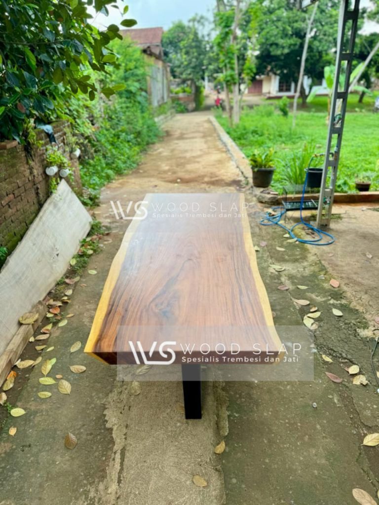 Meja makan berbahan kayu Trembesi solid utuh yang sangat kokoh, sangat cocok untuk ruang makan dan kantor anda yang berkonsep semi modern, produk ini merupakan salah satu dari katalog terbaru dari WOOD SLAP dengan desain klasik dan sederhana, produk ini sangat cocok untuk ruangan yang besar dan kecil. dan juga sangat cocok untuk ruang makan pada rumah anda, produk ini kami produksi dengan menggunakan material kayu trembesi (suar) utuh tanpa sambungan dengan kualitas terbaik dan juga kaki besi hollow stainless anti karat dengan kualitas terbaik,