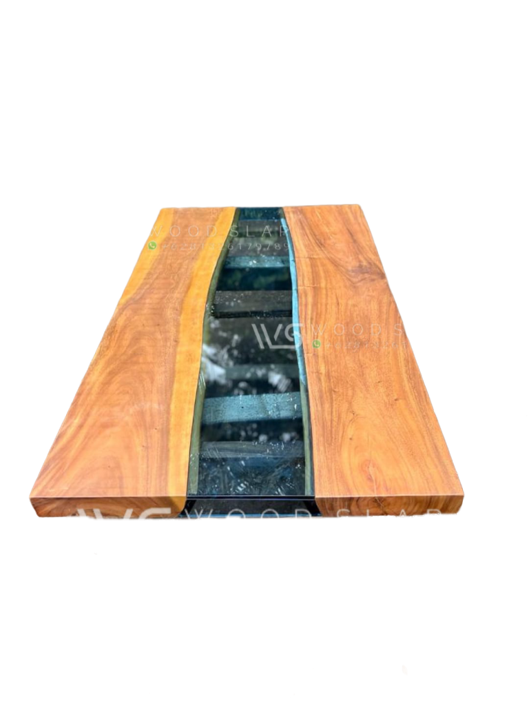 meja tamu dengan desain nature yang sangat kami sarankan untuk menjadi meja pada ruang tamu ruamh anda. dengan inspirasi sungai pada bagian tengah meja menjadikan suasana ruang tamu anda menjadi lebih segar dan nyaman. meja ini terbuat dari material bahan kayu trembesi solid dengan kualitas terbaik. meja ini merupakan koleksi dari WOOD SLAP Jepara.