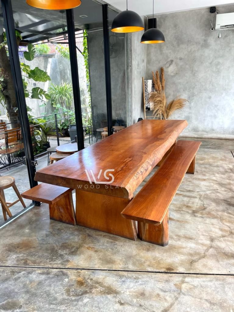 meja meeting dengan bahan kayu solid utuh pada daun meja, meja dengan panjang tiga meter membuat meja ini selain bisa di gunakan untuk meja meeting juga bisa digunakan untuk meja makan.