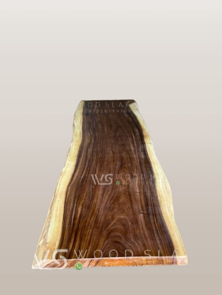 top meja dengan sisi alami menambah kesan elegan pada meja ini. terbuat dari kayu trembesi utuh dengan sentuhan finishing natural walnut gloss wash, membuat tampilan meja sangat pas untuk berada dalam ruangan anda untuk mengisi interior bergaya kalisk vintage.