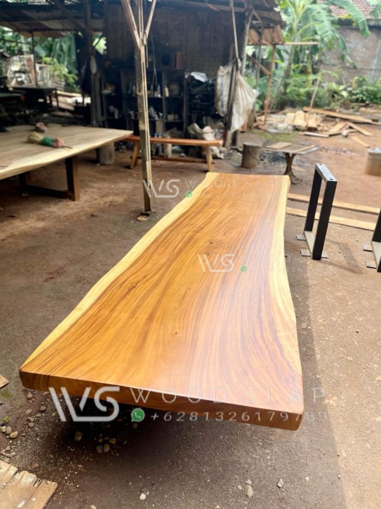 sebuah top meja meeting dengan bahan kayu trembesi solid utuh tanpa sambungan sangat cocok untuk ruang meeting anda atau dijadikan sebagai top table meja makan rumah anda, sangat rekomendasi untuk anda yang mempunyai keluarga besar untuk mempunyai top meja ini. salah satu dari katalog WOOD SLAP Jepara dengan material bahan yang berkualitas.