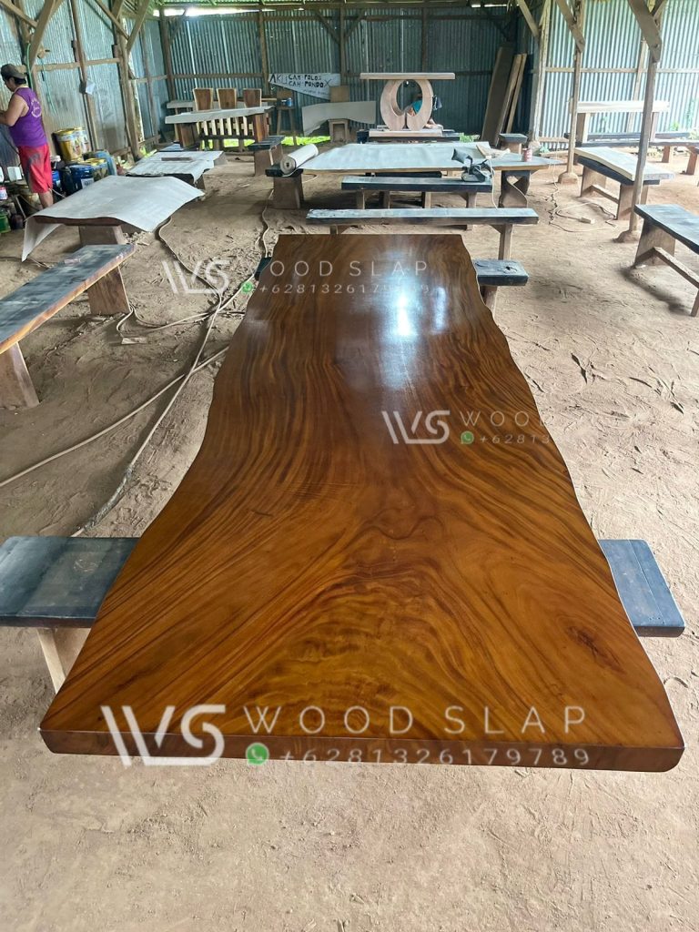 sebuah top meja meeting dengan bahan kayu trembesi solid utuh tanpa sambungan sangat cocok untuk ruang meeting anda atau dijadikan sebagai top table meja makan rumah anda, sangat rekomendasi untuk anda yang mempunyai keluarga besar untuk mempunyai top meja ini. salah satu dari katalog WOOD SLAP Jepara dengan material bahan yang berkualitas.